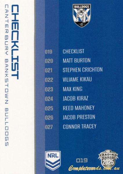 Bulldogs Checklist